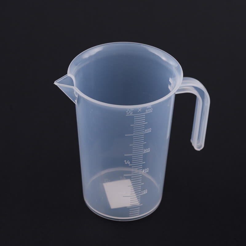 כד מידה פלסטיק איכותי בנפח 500 מ"ל, עם מידות מוטבעות.