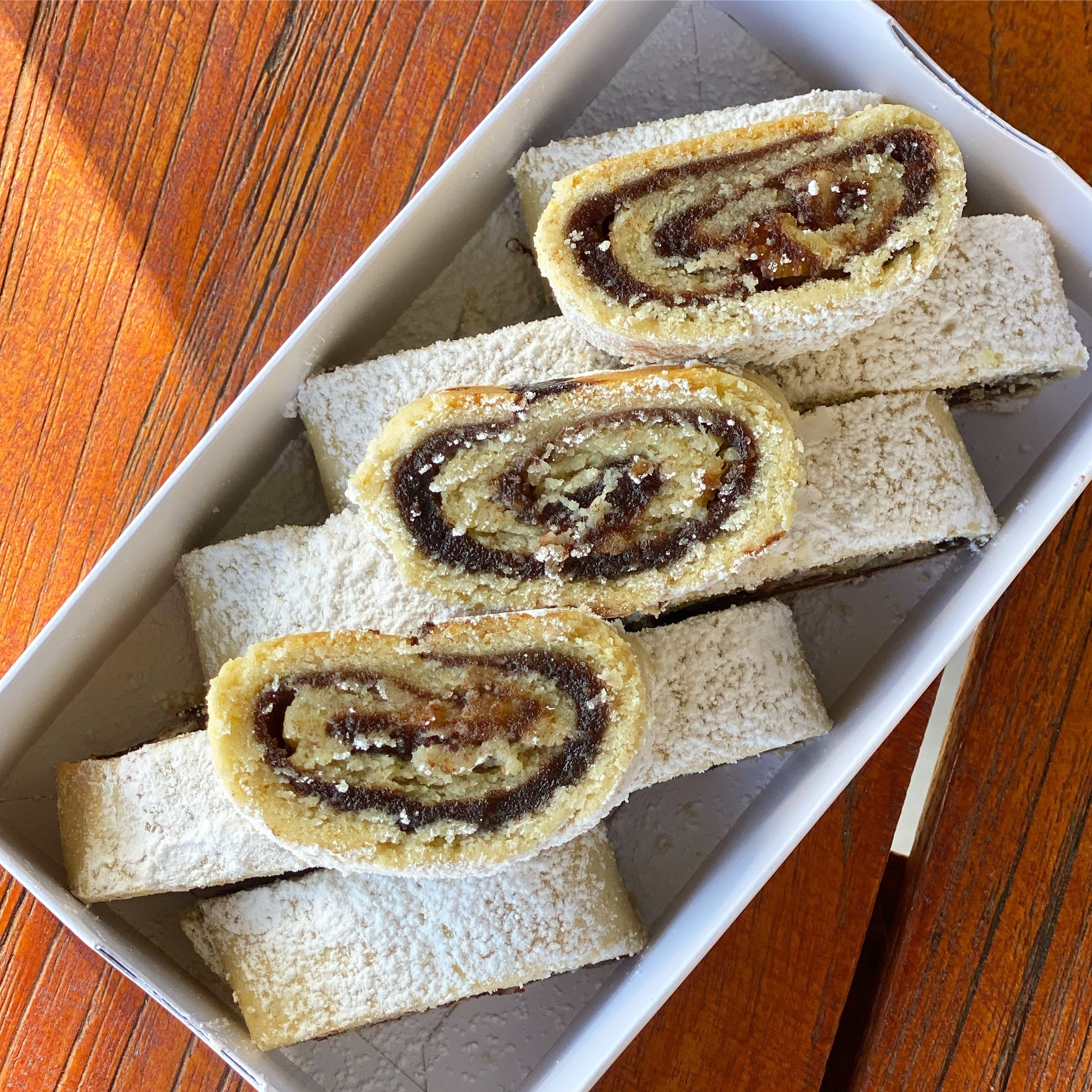 עוגיות מגולגלות בצק פריך במילוי ממרח תמרים ושברי אגוזי מלך